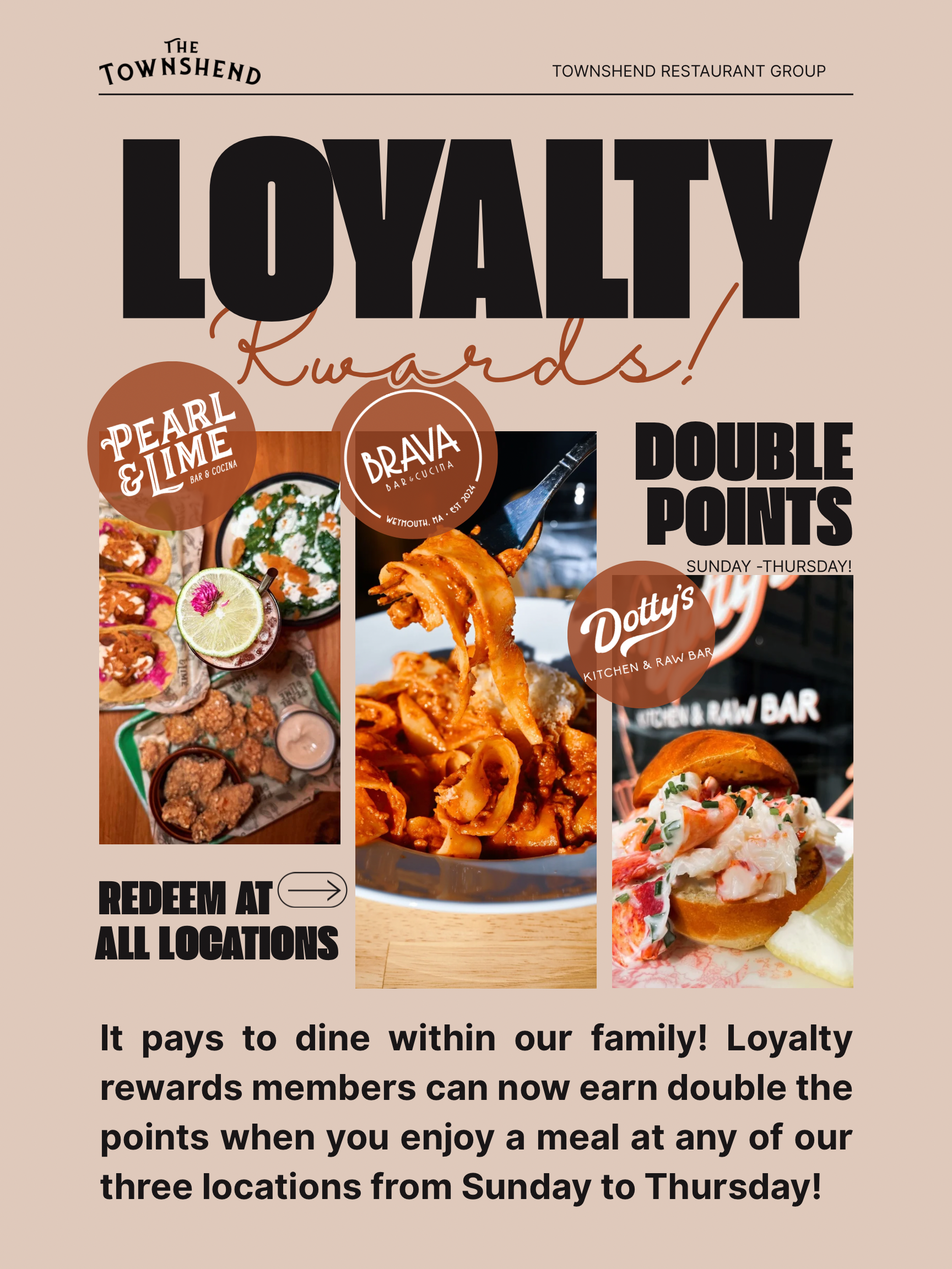 Bonus: earn double the points when you dine with us Sunday-Thursday at all three locations!